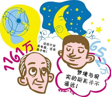 俗話說“有心栽花花不成,無心插柳柳成蔭”,購彩過程往往也如是,精心選擇的號碼不一定中獎,偶爾或隨意選的號卻往往帶來意外驚喜;有些人為中獎殫精竭慮一無所獲,也有些人稀里糊涂地就被大獎砸中了。 原想要臺電扇卻得了1100萬 江蘇省體彩為了回饋彩民而開展“買大樂透送電扇”的活動,無錫的張大爺就是沖著電扇買了一張12元的復(fù)式票,然后再用剩余的3元錢又買了一注追加票。結(jié)果,這個“無心插柳”舉動的結(jié)果是:張大爺電扇沒中到,卻一舉中得大樂透11049期頭獎,獎金高達1161萬元。 張大爺已經(jīng)買了好幾年彩票,但每次數(shù)額都不大,從沒有超過10元錢,更別說什么復(fù)式票了。不過眼下的買大樂透送電扇活動還是挺吸引張大爺?shù),只要買6碼的復(fù)式票就有機會中臺電扇。“不就是多加幾塊錢嗎?正好夏天也來了,中臺電扇還是不錯的!睆埓鬆斣局皇潜е@樣的想法。 4月30日這天,他獨自一人來到了02777銷售站點,在仔細咨詢過之后,掏出了15塊錢,打了一張最小的6碼的12元復(fù)式票。 這張復(fù)式票很快就被打了出來,遺憾的是序列號的后兩位并不是“88”,所以沒中得電扇。銷售員見張大爺很失望就安慰他:“你正好還有3塊錢零錢,不如再來1注追加吧!睆埓鬆敭(dāng)時的情緒不高,還以為站點忽悠他呢,不過想想這3元錢雖然不能買復(fù)式,隨機還是可以買的,就這樣,一張隨機的3元票出爐了。 第二天開獎,張大爺認真核對中獎號碼后樂開了花。看到他的興奮樣子,老伴問是不是中了1000多元?張大爺回答道:“你少說了個萬字! 夢到中獎號堅守4年有回報 有人為了中獎費盡心思,可也有人僅憑著夢里的一組號碼,竟然意外中得大獎。5月7日中得大樂透11052期一等獎的吉林彩民張先生就是這樣一位幸運的彩民。 “要不是我媳婦用手機上網(wǎng)看到了開獎信息,我到現(xiàn)在還不知道中獎呢!”提起中得超級大樂透652萬元的獎金,張先生笑得合不攏嘴!拔屹I彩票的號碼,我媳婦都知道,平時我忙,雖然買了彩票,但是總是忘記兌獎,這回多虧我媳婦看到開獎號,不然說不定錯過大獎呢! |