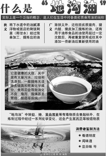 研究表明,長(zhǎng)期攝入地溝油會(huì)對(duì)人體造成明顯傷害,如發(fā)育障礙、易患腸炎,并有肝、心和腎腫大以及脂肪肝等病變。而地溝油中的主要危害物之一黃曲霉素是一種強(qiáng)烈的致癌物質(zhì),其毒性是砒霜的100倍。另一個(gè)問題是倫理上的,別人吃過的油,在下水道里變質(zhì),再撈上來,你能吃得下去嗎? 那么,有沒有一種簡(jiǎn)便的方法,可以鑒別地溝油呢?我們不妨聽聽食品科學(xué)專家和業(yè)內(nèi)人士怎么說。 1、科學(xué)鑒別地溝油 目前沒有好辦法 在一個(gè)注重食品安全的時(shí)代,理想的狀態(tài)是,你下館子,隨手掏出一張?jiān)嚰埥讲死?過一會(huì)兒拿出來跟譜表比比,然后大叫:“掌柜的,換油!” 2、傳統(tǒng)的檢測(cè)方法 都有一定局限性 在科研工作者看來,治理地溝油的難點(diǎn)在于,經(jīng)過洗滌、蒸餾、脫色、脫臭等精煉過程后,單從外觀和感官上,很難區(qū)分地溝油和普通油。不法商販還會(huì)把地溝油摻入食用油中,如果含量較少,更是難以檢測(cè)。 3、鑒別地溝油 冰箱顯身手? 曾在北京多家大酒樓擔(dān)任總廚、高管的特級(jí)廚師馮鵬說,一般情況下,地溝油和普通油無法區(qū)分,進(jìn)貨時(shí)難免上當(dāng)。他只能通過實(shí)踐來判斷:飯館炒菜之前一般要先過油,在這道“滑油”工序中,好油可反復(fù)使用七八次,而地溝油最多使用三次就會(huì)變黏,而且有哈喇味兒。 “另外,室外溫度較低時(shí),地溝油會(huì)像棕櫚油一樣凝固,所以常有人用地溝油冒充棕櫚油。”馮鵬說,冬天可以據(jù)此鑒別地溝油,夏天則可通過冰箱來檢驗(yàn)。一些媒體認(rèn)為地溝油有味道,可以聞出來,此外里面含水多,下鍋會(huì)爆響,馮鵬認(rèn)為這些都是無稽之談,因?yàn)樗緭讲贿M(jìn)油中,且地溝油也沒什么異味。 4、我們?cè)撊绾巍¤b別地溝油? 一看?赐该鞫,純凈的植物油呈透明狀,在生產(chǎn)過程中由于混入了堿脂、蠟質(zhì)、雜質(zhì)等物,透明度會(huì)下降;看色澤,純凈的油為無色,在生產(chǎn)過程中由于油料中的色素溶于油中,油才會(huì)帶色;看沉淀物,其主要成分是雜質(zhì)。 二聞。每種油都有各自獨(dú)特的氣味?梢栽谑终粕系我粌傻斡,雙手合攏摩擦,發(fā)熱時(shí)仔細(xì)聞其氣味。有異味的油,說明質(zhì)量有問題,有臭味的很可能就是地溝油;若有礦物油的氣味更不能買。 三嘗。用筷子取一滴油,仔細(xì)品嘗其味道?诟袔嵛兜挠褪遣缓细癞a(chǎn)品,有焦苦味的油已發(fā)生酸敗,有異味的油可能是地溝油。 四聽。取油層底部的油一兩滴,涂在易燃的紙片上,點(diǎn)燃并聽其響聲。燃燒正常無響聲的是合格產(chǎn)品;燃燒不正常且發(fā)出“吱吱”聲音的,水分超標(biāo),是不合格產(chǎn)品;燃燒時(shí)發(fā)出“噼啪”爆炸聲,表明油的含水量嚴(yán)重超標(biāo),而且有可能是摻假產(chǎn)品,絕對(duì)不能購(gòu)買。 五問。問商家的進(jìn)貨渠道,必要時(shí)索要進(jìn)貨發(fā)票或查看當(dāng)?shù)厥称沸l(wèi)生監(jiān)督部門抽樣檢測(cè)報(bào)告。 |
