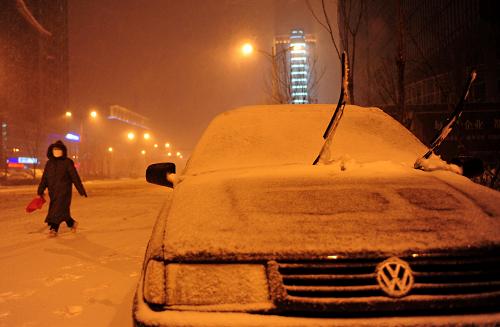 11月22日,一位沈陽(yáng)市民穿著厚厚的棉衣在街上行走。當(dāng)日晚,受冷空氣影響,沈陽(yáng)迎來(lái)大范圍降溫和降雪,降雪給市民出行帶來(lái)極大不便。