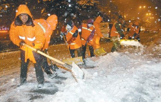 每當(dāng)大雪來(lái)臨時(shí),市民們都想快點(diǎn)回家,可是有一批人得準(zhǔn)備好向外出發(fā)。 對(duì)!這就是具有“城市美容師”之稱的環(huán)衛(wèi)工人。 昨日沈陽(yáng)暴雪,沈陽(yáng)全市的環(huán)衛(wèi)工人在雪地中度過(guò)了一個(gè)寒冷的夜晚。 連夜除雪 早上還得接著干 昨夜,記者在沈陽(yáng)街頭,每隔一段路程就看到一批環(huán)衛(wèi)工人在掃雪。在北陵大街和昆山路交通崗北側(cè),有20余名環(huán)衛(wèi)工人在路上除雪。皇姑區(qū)建管局遼河城管所北陵大街環(huán)衛(wèi)班班長(zhǎng)張東冬說(shuō),他們負(fù)責(zé)的區(qū)域就是北陵大街的全線,她早上不到6點(diǎn)鐘就從家出發(fā)了。 張東冬的家在西瓦窯,距離工作區(qū)域有20分鐘的路程。張東冬說(shuō):“早上還是正常的掃保作業(yè),中午所里開(kāi)會(huì)說(shuō)要下大雪,下午就開(kāi)始作準(zhǔn)備,不到晚上8點(diǎn)就到掃保區(qū)域開(kāi)始除雪了! 當(dāng)記者問(wèn)到除雪得干多長(zhǎng)時(shí)間時(shí),張東冬表示:“今天這場(chǎng)雪這么大,并且現(xiàn)在還在下,估計(jì)后半夜雪停后,還得干上一段時(shí)間,怎么也得干上一宿,北陵大街的機(jī)動(dòng)車道才能見(jiàn)亮。明天早上還得接著除慢車道上的積雪,怎么也得連續(xù)干上24個(gè)小時(shí),對(duì)于我們這是常事兒!” 拉開(kāi)外衣 里面都結(jié)了冰晶 昨夜的大雪配合著大風(fēng)天氣,雪花被風(fēng)吹打到人的臉上都會(huì)有疼痛的感覺(jué)。入夜后氣溫迅速降低,夜間最低氣溫降到了-10℃。環(huán)衛(wèi)工人穿著厚厚的棉衣開(kāi)始在寒風(fēng)中工作。張東冬告訴記者她穿了三層外衣,拉開(kāi)最外層外衣的拉鎖,記者看見(jiàn)在外衣的里面已經(jīng)結(jié)了一層冰晶。 張東冬表示,這才干了3個(gè)小時(shí),要是干上一晚上第二天回家脫下來(lái)的內(nèi)衣都能擰出水來(lái)。 夜間吃飯 迎風(fēng)就雪吃下 環(huán)衛(wèi)工人到了吃飯和喝水的時(shí)候是最難的了,他們到了飯點(diǎn)就只能在冰天雪地中吃飯。 一般到了吃飯的時(shí)候,所里會(huì)給大家?guī)?lái)盒飯,白天還好些,還能在街邊的門市網(wǎng)點(diǎn)里吃飯,要是到了深夜,網(wǎng)點(diǎn)都關(guān)門了,就只能在路邊吃飯了。晚上環(huán)衛(wèi)們都會(huì)吃些簡(jiǎn)單方便的食品,沒(méi)等吃呢食物都已經(jīng)涼透了,時(shí)常飛舞的雪花還會(huì)到嘴里。喝水就更難了,帶的水不一會(huì)兒就涼了,有時(shí)候還會(huì)結(jié)冰。昨夜,皇姑區(qū)建管局遼河城管所所長(zhǎng)曲樂(lè)平接受記者采訪時(shí)表示:“全所所有的環(huán)衛(wèi)都已上街除雪,會(huì)克服一切困難,保證23日早上機(jī)動(dòng)車道清掃完成,明天還將對(duì)慢車道進(jìn)行除雪,保證市民出行順暢! |