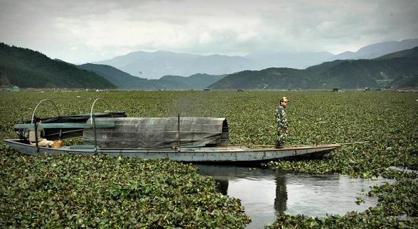 福建寧德市古田縣水口鎮(zhèn)灣口村段,浩浩蕩蕩的水葫蘆延綿閩江近10公里,如同草原。2011年,該鎮(zhèn)400多養(yǎng)殖戶的網(wǎng)箱遭遇大面積死亡現(xiàn)象損失上億元,今年養(yǎng)殖區(qū)又遭水葫蘆圍困魚苗都無法放養(yǎng)。