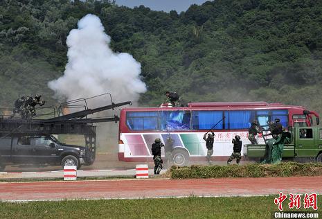 作為亞運(yùn)安保主力的武警廣東總隊(duì)官兵,連日來在某訓(xùn)練基地進(jìn)行演練。為應(yīng)對(duì)恐怖事件,該總隊(duì)強(qiáng)化了體能、攀登、擒敵、射擊、偵查、野外生存等訓(xùn)練,并邀請(qǐng)反恐專家研究處置策略和戰(zhàn)術(shù)手段。